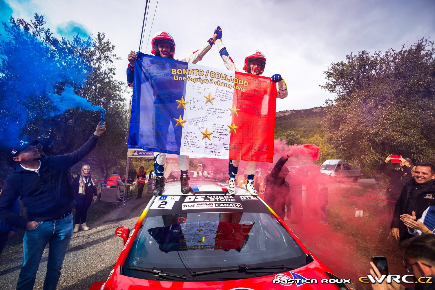 "Eric Camilli et Thibault De La Haye s’imposent ce weekend au Critérium des Cévennes, une 3ème victoire cette saison pour le pilote niçois, la 2ème avec Thibaut De La Haye. La deuxième position à l’arrivée à Montpellier est cependant suffisante à Yoann Bonato pour coiffer une 6ème couronne* et rejoindre au palmarès son copilote Benjamin Boulloud déjà titré* au Cœur de France. Hugo Margaillan et Mathieu Coppa montent sur la 3ème marche du podium et remportent les titres pilote* et copilote* du Classement Promotion – Trophée Michelin 2025.
