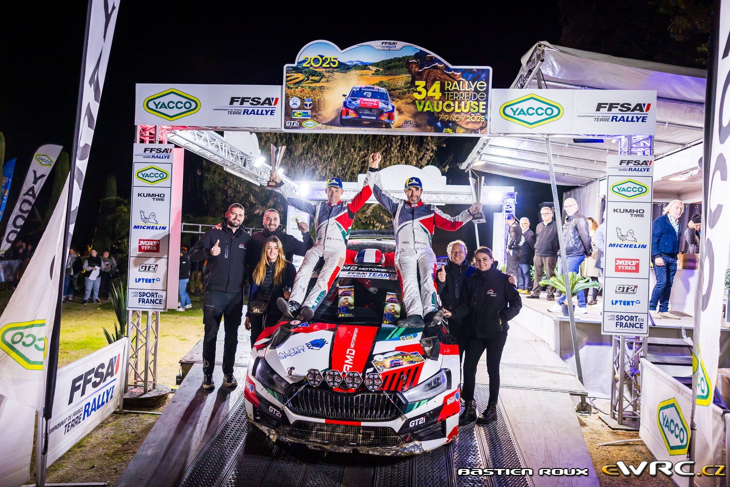 Son dauphin n’est autre que l’Américain Conner Martell, vice champion de Etats-Unis en 2025 ! Aux commandes de la Skoda Fabia Rally2 du Team 2C Yacco RS, il a parfaitement mis à profit les conseils prodigués par Laurent Pellier tout au long du week-end pour s’offrir une belle deuxième place et même trois temps scratch !